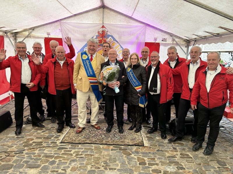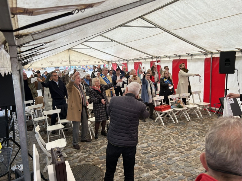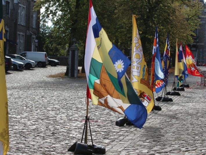 De weersvoorspelling gaf 15 graden en zonneschijn aan, dus mooi weer. Het St. Georges-plein was prachtig versierd met de historische vlaggen van de abdij Rolduc uit Kerkrade. Als speciale gast was de bekende fotograaf Peter Trompetter aanwezig. Mooie foto’s zullen straks op de site van de ambassade Limbourg te bewonderen zijn.