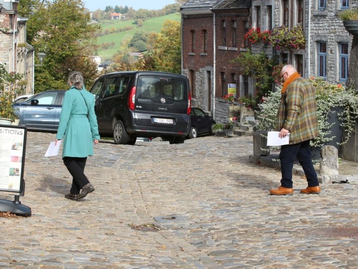 Der Himmel hat uns nicht enttäuscht! Er eröffnete sich in einem herrlichen Blau und zeigte uns seine Sonne, so dass schon am frühen Morgen die Wanderlaune bis in den Himmel stieg! Zunächst noch ein paar Ründchen auf dem wunderbaren Markt in Aubel, wo es einfach schön ist herumzuschlendern, vorbei an all den Leckereien und handgemachte Produkten! Dann um 13:00 Uhr Treffen am Startpunkt! Von dort aus begann ein unbeschreiblicher, von allen als wunderschön empfundener Weg mit Aussichten, die unsere Herzen stets höher schlagen ließen. Das Feedback sagte, dass diese Art des Wanderns, die auch unterbrochen ist durch bestimmte kleine Erklärungen, besonders gut gefunden wurde. Also! Das machen wir weiter! Dann der Abstieg ins Val Dieu! Vorbei an der Kirche von Saint-Jean-Sart, vorbei an den zutraulichen Pferden hinab ins Tal Gottes, Val Dieu, zur wunderschönen Abtei. Auf der Terrasse der Mühle bot uns ein langer Tisch die Möglichkeit, noch einmal gemeinsam die Eindrücke auszutauschen und uns bei einem frischen, belgischen Bier zu erquicken einzukaufen! Mariëtte und Nikolas haben unsere Busse geholt! Toll! Alles hat geklappt! Wieder zurück in Aubel noch ein herzlicher Abschied und sehr viel Freude über den gelungenen Tag! Alle gehen wieder in verschiedene Richtungen, aber mit einer gemeinsamen Erinnerung an einen wunderschönen Tag.